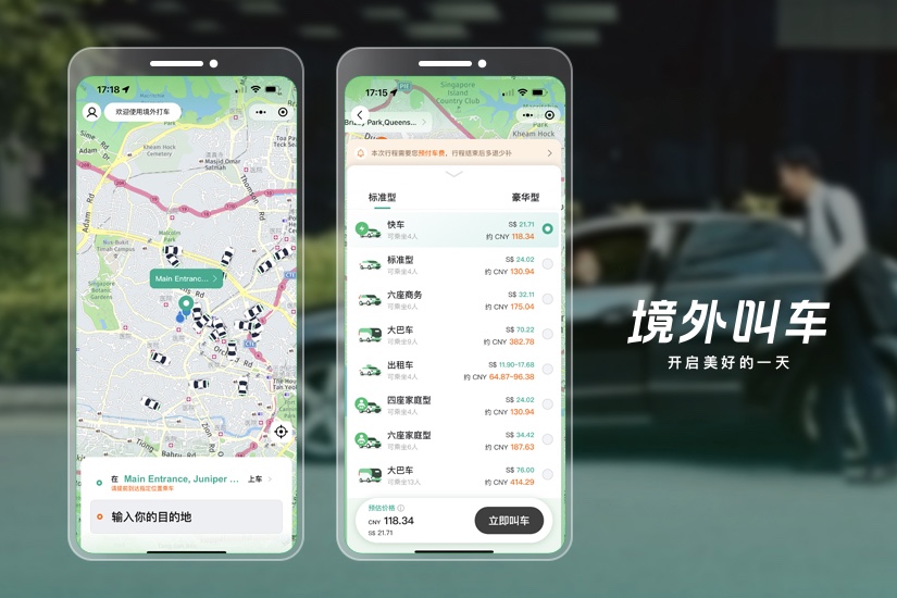 Overseas Chinese-language taxi services, as well as real-time public transportation queries and ticket purchases.